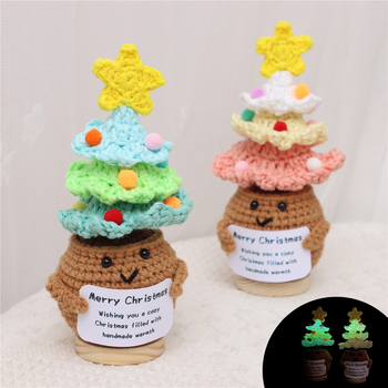 Árbol de Navidad luminoso de ganchillo hecho a mano en maceta con tarjeta para decoración de fiesta de Navidad regalo para adultos y niños